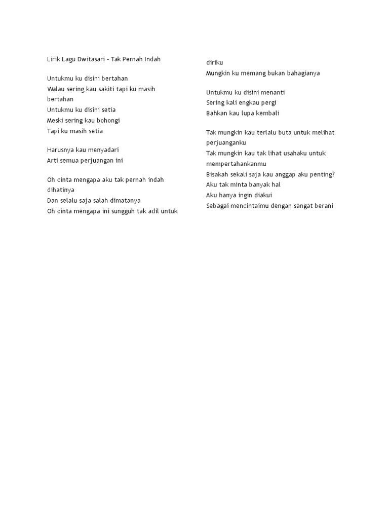 . Berikut cuplikan syair nyanyian teks dari lagunya. Lagu Antara Kita yang dibawakan Ungu ini menyampaikan suasana dua insan yang tengah merasakan kebersamaan dalam dekapan. Biarkanlah hatimu dan hatiku menyatu.
