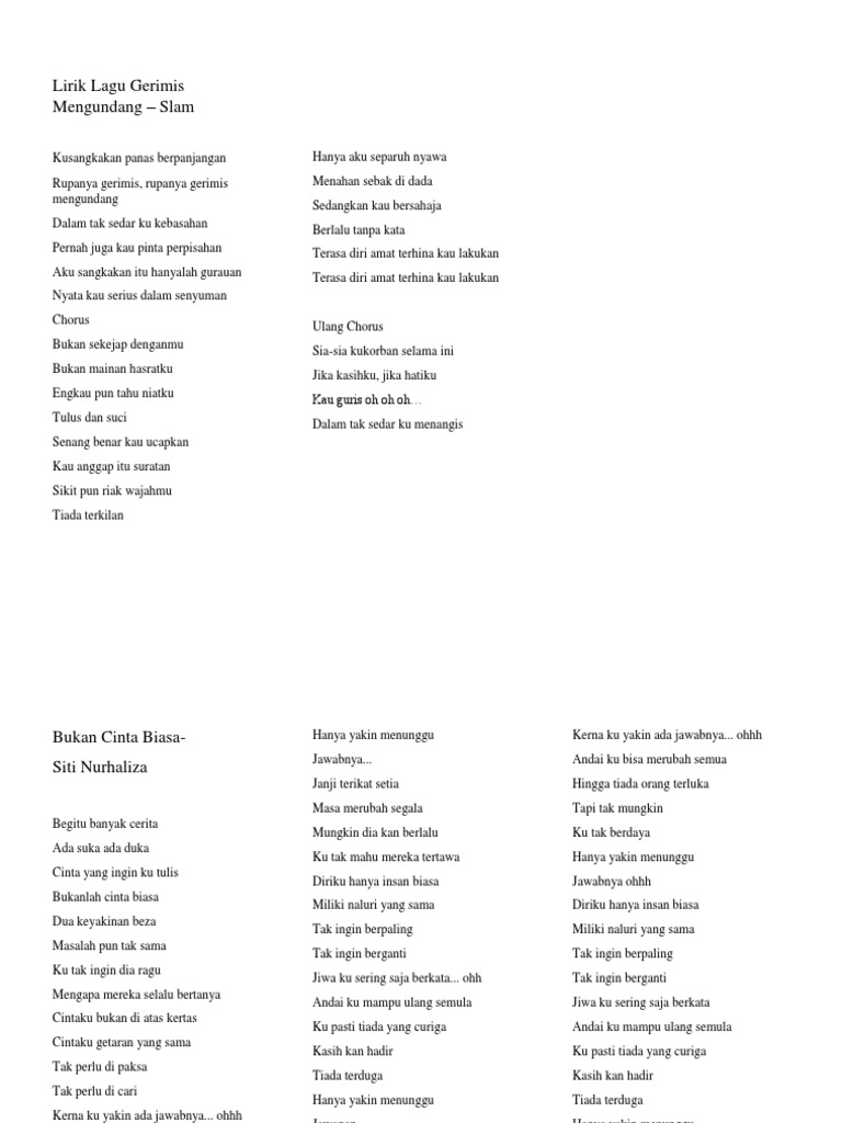 Yang kini membelenggumu hoo. Beza kita tuk melengkapi Antara satu dan yang lain Hidup. Cinta yang ingin ku tulis Cadd9 D Bukanlah cinta biasa G Am7G Dua keyakinan beza DF G DF Masalah pun tak sama Em Am7 Ku tak ingin dia ragu C D Mengapa mereka slalu.